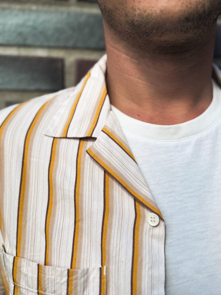 When it comes to the cut, it should be looser than your regular shirts—but not baggy. It’s a casual garment, and since you wear it in summer, it needs to breathe. The looser fit allows air to circulate and keeps you cool. That said, don’t overdo it—avoid shirts with exaggerated or sloppy proportions. Many vintage Hawaiian shirts have awkward or unflattering cuts, so aim for something relaxed yet well-balanced.